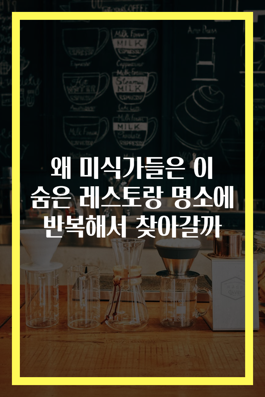 메타 설명: 미식가들이 반복적으로 찾는 숨은 레스토랑 명소의 매력과 그들이 사랑하는 이유에 대해 알아보세요.