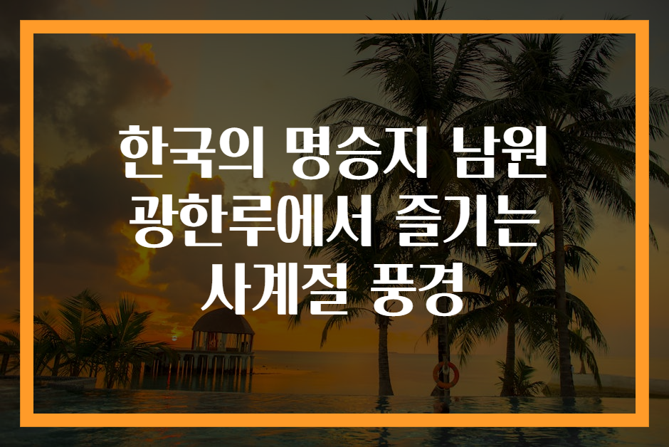 해시태그: 남원광한루, 한국명승지, 사계절풍경, 문화체험, 전통음식, 벚꽃, 단풍, 역사여행, 가족여행, 힐링여행